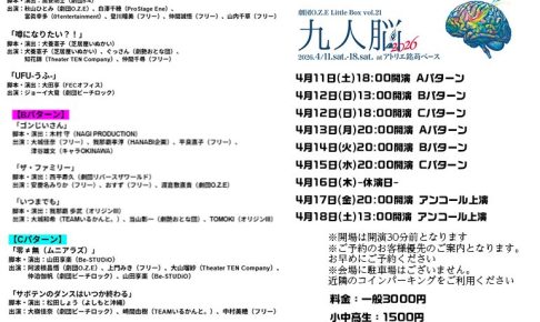 【日時】4月11日(土)18:00開演 Aパターン 4月12日(日)13:00開演 Bパターン 4月12日(日)18:00開演 Cパターン 4月13日(月)20:00開演 Aパターン 4月…