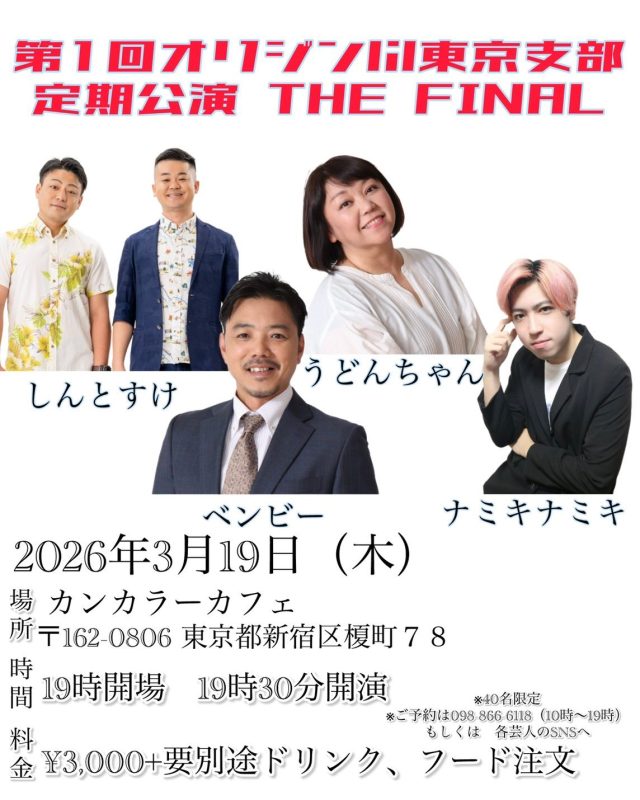 【予約】098-866-6118(10時〜19時) or 各芸人のSNSへ